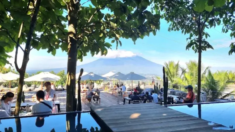 Kopi Nako Kebon Jati: Bayangkan ngopi di tengah hutan jati dengan pemandangan langsung ke Gunung Salak. Area outdoor-nya sangat luas dengan pilihan bean bag yang nyaman. (Alamat: Jl. Perjuangan, Megamendung).