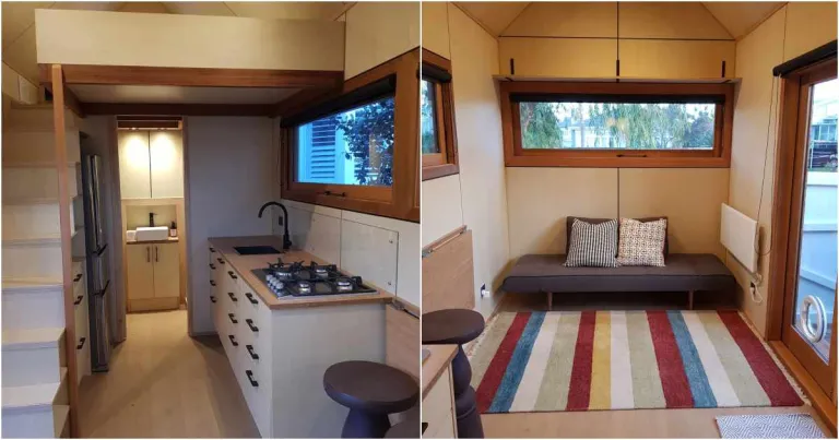 Rumah mungil ini baru dibangun dengan material dan desain ramah lingkungan. Rumah ini hemat ruang dan mandiri, dengan semua fasilitas yang dibutuhkan untuk kehidupan modern yang nyaman. Rumah ini memiliki kamar tidur loteng, dapur lengkap, dan dek dengan ruang tamu luar ruangan dan fasilitas barbekyu.