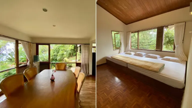 Membutuhkan tempat yang lebih besar untuk kumpul keluarga? Kamu bisa menjadikan properti ini sebagai pertimbangan. Terletak di kawasan Megamendung, rumah ini menawarkan suasana klasik yang nyaman. Jendela-jendela besar menghadap langsung ke pemandangan hijau, membiarkan udara segar masuk ke dalam. Selain itu, rumah ini juga memiliki dapur yang lengkap sehingga kamu bisa mengkreasikan masakanmu. Di pagi hari, sempatkan menyeduh kopi dan menyesapnya di balkon untuk penutup liburan yang sempurna sebelum check out.