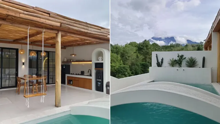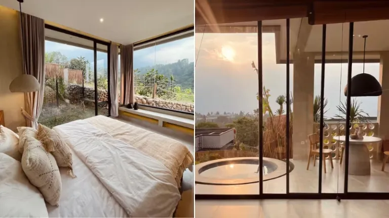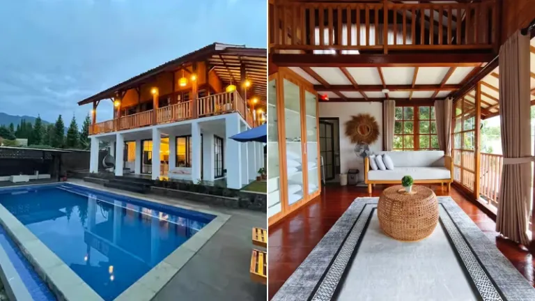Siapa bilang kamu tidak bisa merasakan vibes tropis seperti di Bali ketika liburan ke Puncak? Airbnb yang satu ini secara spesifik mendesain tempatnya dengan nuansa tersebut. Dengan jendela-jendela besar dan tata letak yang estetik, setiap sudut vila ini sangat Instagramable. Selain itu, di bagian belakang juga terdapat kolam renang pribadi di mana kamu bisa menikmati floating breakfast sambil melihat langit Puncak yang menawan. Ini adalah pilihan sempurna bagi keluarga muda yang ingin konten liburan kece sekaligus tempat istirahat yang nyaman.