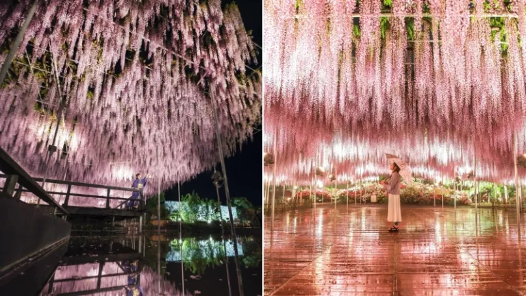 Ada alasan kuat mengapa CNN pernah menobatkan tempat ini sebagai salah satu dari International Dream Destinations. Daya tarik utamanya tentu saja adalah The Great Wisteria, pohon legendaris yang memiliki luas kanopi mencapai ratusan meter persegi dengan ribuan bunga ungu yang menjuntai. Berdiri di bawah pohon ini saat matahari mulai terbenam akan memberikan sensasi seolah kamu sedang berada di bawah hujan cahaya berwarna ungu.