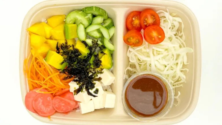 Solusi aman lainnya yang berisi tempura sayuran, tahu panggang, acar, terong miso, dan nasi atau mie soba.