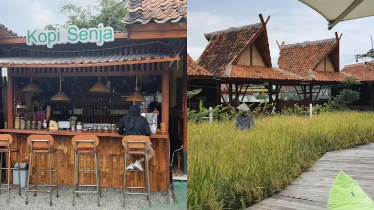 Kopi Senja berlokasi di Kampung Muara Sunda, menyajikan pemandangan yang sangat menenangkan. Ada hamparan sawah hijau di sekeliling tempat makan sekaligus tempat nongkrong di Garut yang satu ini, memberikan nuansa pedesaan yang menyejukkan mata.