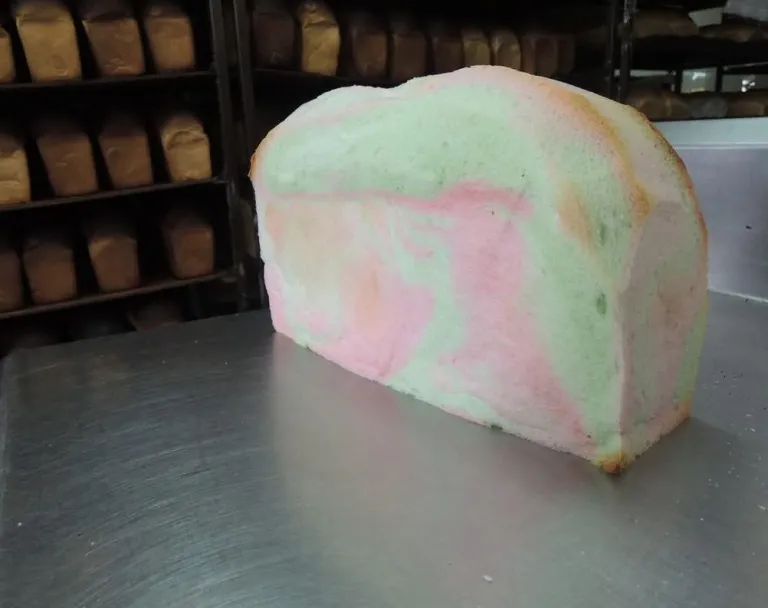 Kamu dapat memilih roti yang kamu inginkan dari etalasenya yang minimalis. Ada roti tawar pelangi, gula merah, hingga selai buatan sendiri. Untuk meramaikan rasa rotimu, ada kopi O, ice bandung dan ice maslime yang bisa dipesan.