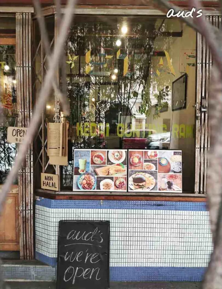 Bila mencari Aud’s Cafe, kamu akan dibawa menuju sebuah bangunan dengan pepohonan yang hijaunya menutupi dinding cafe. Masuk ke dalamnya dan kamu akan merasakan suasana nostalgia dari perabotan kayu dan musik yang diputar sepanjang waktu.
