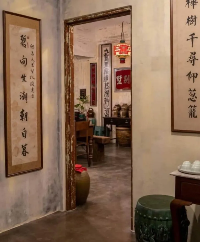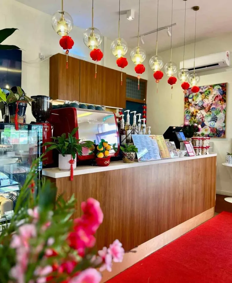 Kagumi deretan lampion, lemari jadul dan aneka ornamen di dindingnya yang diletakkan berdempetan. Terlihat padat tapi juga meriah dan menarik dengan gayanya sendiri. Cicipi handmade radish cake, peach gum dan shredded chicken horfun yang menjadi kekhasan dari cafe ini.