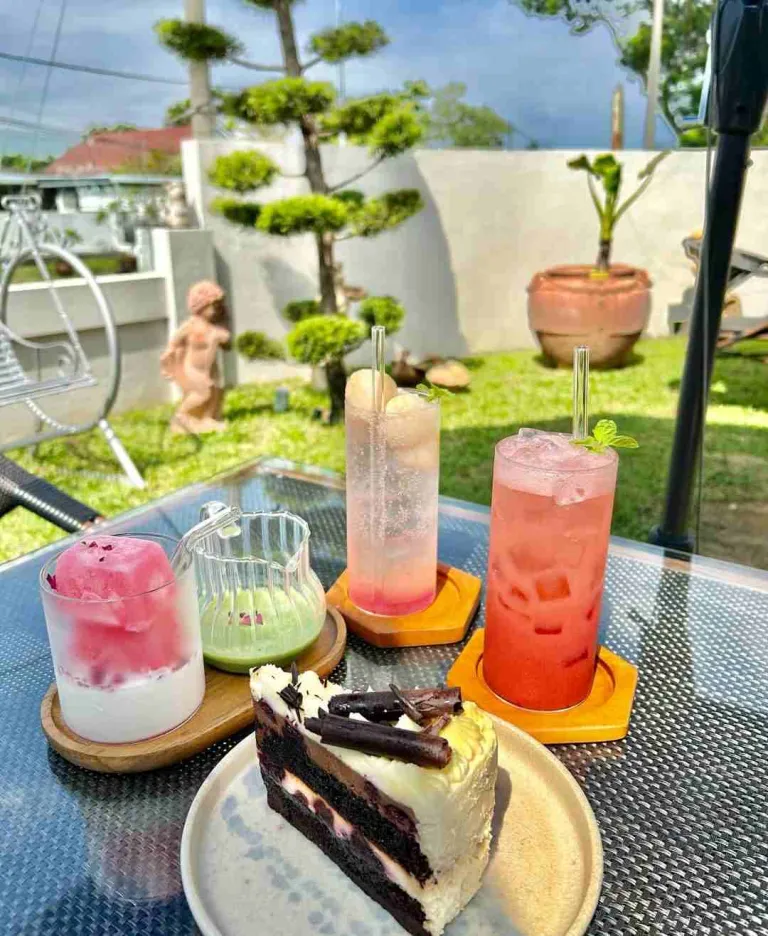 Tambah warna-warni di ruangan cafe dengan memesan croffle, milkshake atau teh bunganya. Atau pilih kudapan manis yang kamu inginkan dari etalasenya. Apapun yang kamu pesan, semuanya terlihat instagrammable di sini.