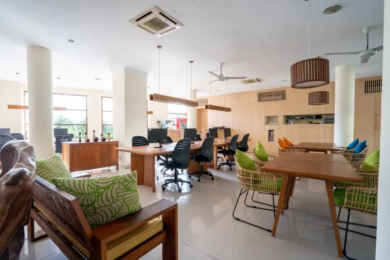 Salah satu ruang kerja bersama terbaru yang memadukan kenyamanan rumah dengan fasilitas kerja modern adalah Work Hub. Ruang ini dirancang untuk pekerja lepas, usaha kecil, dan startup yang menginginkan tempat tenang untuk fokus. Coworking space di Seminyak ini dilengkapi meja khusus, ruang rapat, dan bahkan area kebugaran kecil untuk meregangkan badan di sela-sela sesi.
