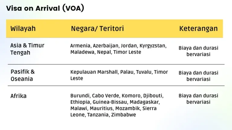 Cek Ulang: Kebijakan visa bisa berubah kapan saja. Selalu verifikasi status visa terbaru di situs resmi kedutaan negara tujuan sebelum kamu booking tiket.