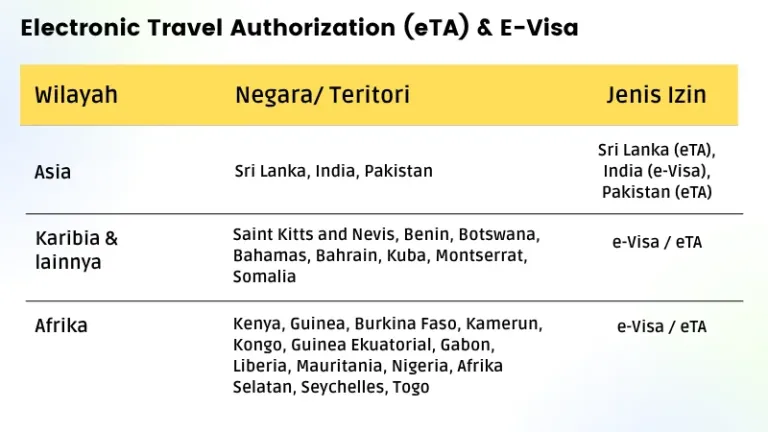 Izin ini wajib diurus secara online sebelum keberangkatan, namun prosesnya jauh lebih cepat dan sederhana daripada visa biasa.