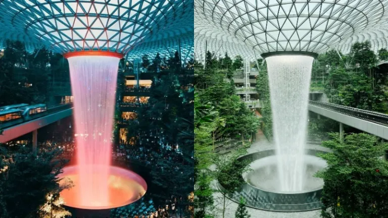 The Skytrain Hack: Mau lihat air terjun dari dekat secara gratis? Naiklah Skytrain yang menghubungkan Terminal 2 dan Terminal 3. Kereta ini bakal lewat tepat di depan air terjun. Kamu bisa dapat front-row seat setinggi mata!