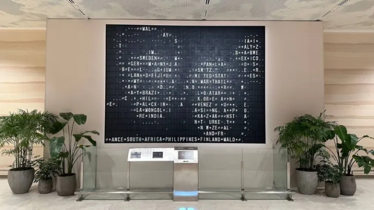 Ingat papan jadwal penerbangan zaman dulu yang bunyinya krek-krek-krek saat angkanya berubah? Di Changi T2, teknologi split-flap itu diubah jadi karya seni bernama Flap Pix. Kamu bisa berfoto selfie, dan fotomu akan muncul di papan besar yang siluetnya terbentuk dari ribuan huruf dan angka yang bergerak. Unik banget dan memberikan kesan nostalgic buat generasi lama sekaligus keren buat generasi baru.