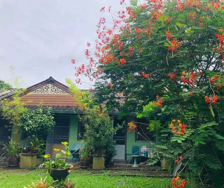 Penuh dengan pepohonan rimbun, jangan heran kalau kamu perlu sedikit berjalan kaki untuk menemukan Baan Bua Guest House. Memang taman ini akan menjadi pengobat penat yang ampuh dengan warna-warni bunganya yang beragam.