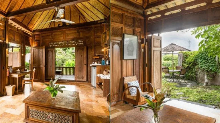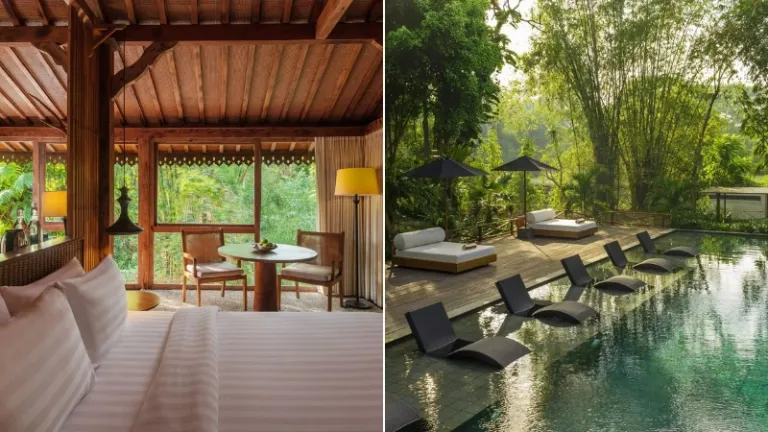 Kamu bisa memulai hari dengan sesi yoga di tepi sungai atau sekadar duduk santai di dek kayu sambil menikmati keindahan arsitektur hotel yang sangat Instagrammable ini. Selain itu, ada pula studio swing yoga bagi kamu yang ingin melenturkan otot. Setiap kamar di sini memiliki teras yang terhubung langsung dengan kolam renang pribadi.