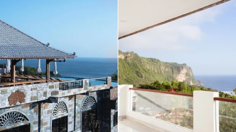 Ketika sore hari tiba, jangan lupa mampir ke area restoran mereka. Dari sini, kamu dapat menyaksikan momen matahari terbenam yang cantik juga magis. Infinity pool-nya juga menjadi spot foto favorit karena posisinya yang menjorok ke arah bukit. Kamu bisa menghabiskan waktu dengan mengeksplorasi setiap sudut bangunannya yang artistik atau sekadar menikmati udara segar di balkon kamar yang privat.