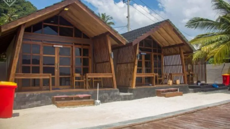 Bagi yang mendambakan sensasi menginap di rumah tepi pantai dengan desain serba kayu, Teras Pahawang di Pulau Pahawang adalah jawabannya. Pulau ini terkenal dengan keindahan lautnya yang biru jernih, dan kamu dapat duduk santai di depan kamar sambil menikmati pemandangan matahari terbenam yang magis. Penginapan ini menawarkan koneksi langsung dengan alam Pahawang yang menawan.