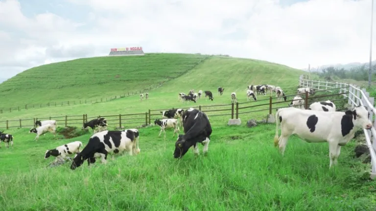 Sepanjang perjalananmu menjelajah Baturaden, kamu akan disuguhkan pemandangan hijau yang menyejukkan mata. Bahkan, kamu akan melewati peternakan sapi perah yang vibes-nya hampir mirip seperti di Swiss! Hamparan rumput hijau yang luas di pegunungan dan kawanan sapi yang sedang mencari makan, sangat indah!