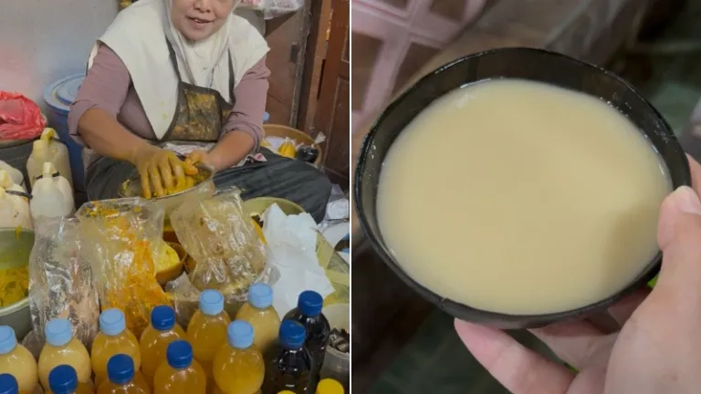 Kecewa? Sedikit, namun tujuan utama saya sebenarnya terletak di dalam lorong-lorong pasar. Di salah satu lorongnya, saya akhirnya bertemu dengan penjual jamu yang meracik pesanannya langsung dengan cara memeras berbagai campuran rempah. Karena saya bukan penggemar rasa pahit, saya memesan segelas Beras Kencur saja. Rasanya segar, hangat di badan, dan porsinya cukup banyak karena disajikan pakai batok kelapa. Harganya? Cuma Rp5.000 saja! Jika lapar (atau jamu pesananmu terasa terlalu pahit), mereka juga menjual beberapa jajanan pasar.