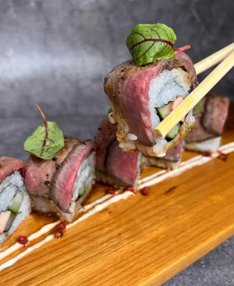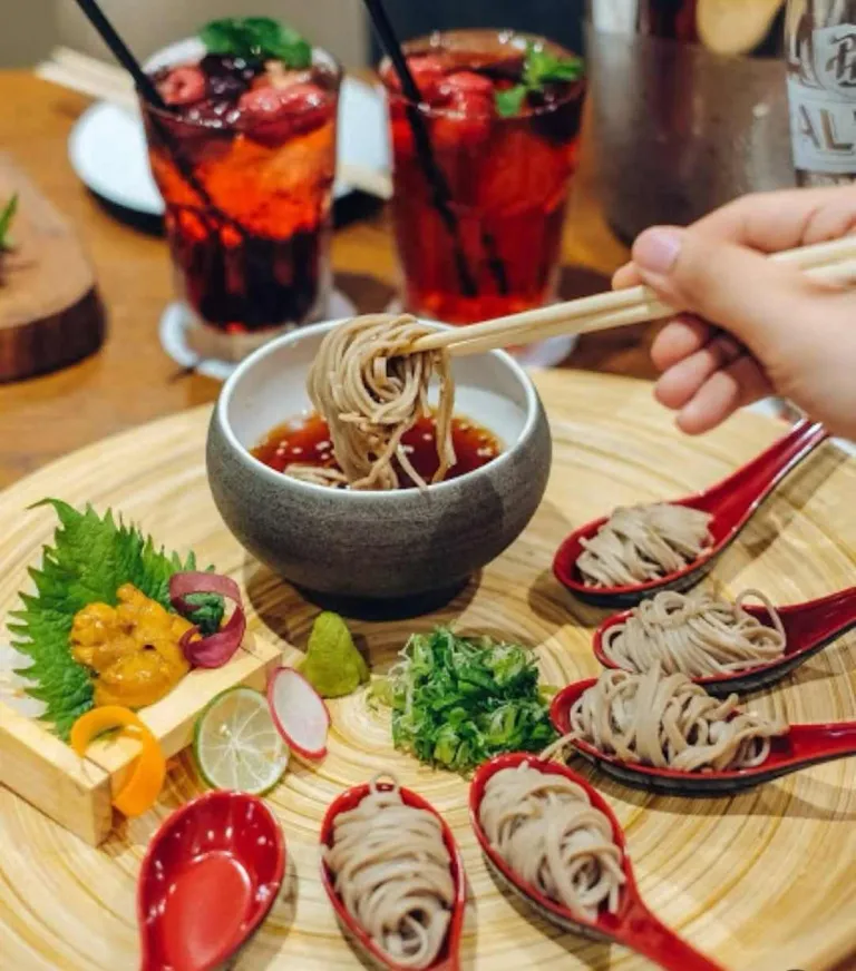 Suasana di izakaya ini sengaja dibuat terlihat kasual agar tamu merasa santai. Di tengah rasa rileks, kamu dapat mencicipi wagyu roasted beef roll sushi dan soba dingin yang ditata dengan artistik.
