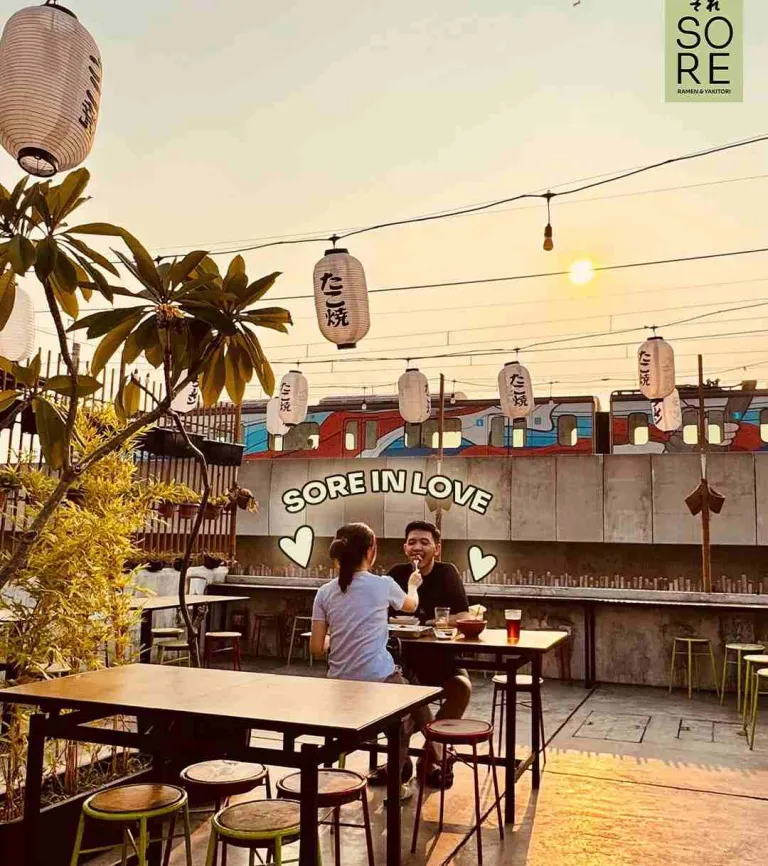 Izakaya ini termasuk unik karena di cabang Fatmawati, terdapat area rooftop yang menyajikan pemandangan kota Jakarta. SORE Ramen & Yakitori akan membuatmu bisa makan enak sambil menikmati suasana khas termasuk MRT yang berlalu lalang.