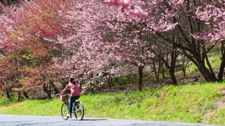 Aowanda punya jalur hiking yang keren banget. Selain sakura di bulan Februari – Maret, kamu juga wajib menyeberangi jembatan gantungnya yang ikonik setinggi 180 meter untuk melihat pemandangan sungai dari ketinggian.
