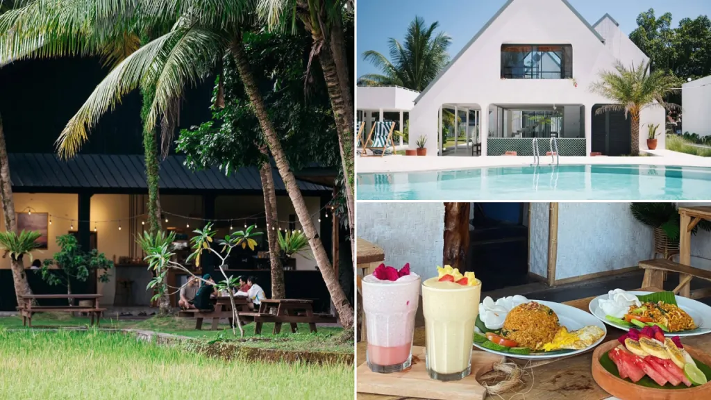 Selain pantai dan sawah, kamu juga bisa nongkrong di tepi sungai dengan angin sepoi-sepoi. Kunjungi Slow Burn Coffee & Eatery yang punya area indoor dan outdoor. Untuk area outdoor menghadap sungai dan dikelilingi pohon kelapa dan pepohonan hijau lainnya. Pilihan menunya beragam mulai dari minuman kopi dan non kopi seperti es leci, coklat, hingga matcha. Untuk menu makanan tersedia burger, nasi goreng, dan aneka camilan.