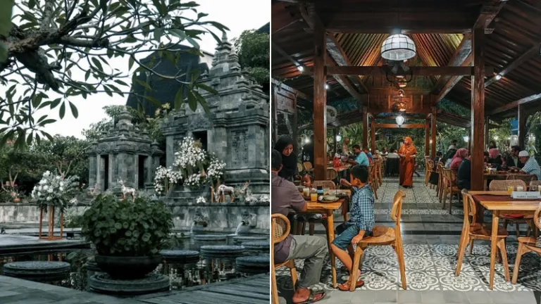 Tempat ini bukan sekadar restoran, melainkan sebuah karya seni. Candi Tirto Raharjo di kawasan Kasongan menawarkan suasana kemewahan Jawa klasik. Daya tarik utamanya adalah area kolam yang didesain menyerupai pemandian raja-raja zaman dahulu, lengkap dengan replika candi di tengahnya. Dikelilingi pepohonan rimbun, makan malam di sini akan membuatmu merasa seperti sedang berada di dalam legenda kerajaan. Restoran ini juga menjadi tempat sempurna bagi kamu yang ingin menggelar acara seperti ulang tahun atau pernikahan.
