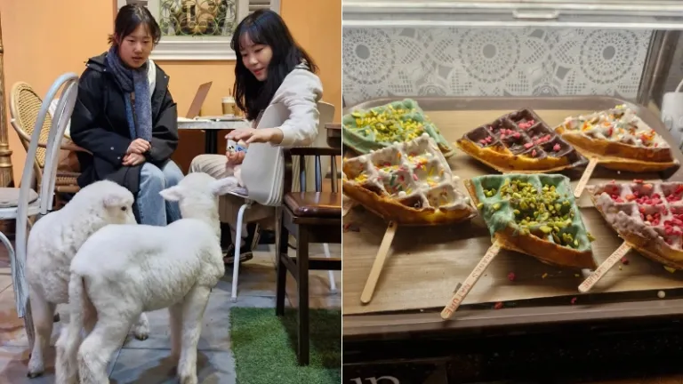 Siapa sangka kombinasi antara domba dan kopi bisa jadi begitu menggemaskan? Di Thanks Nature Cafe, kamu bisa menemukan dua ekor domba lucu yang berkeliaran di area khusus luar kafe, di mana kamu bebas duduk dan bermain bersama mereka.