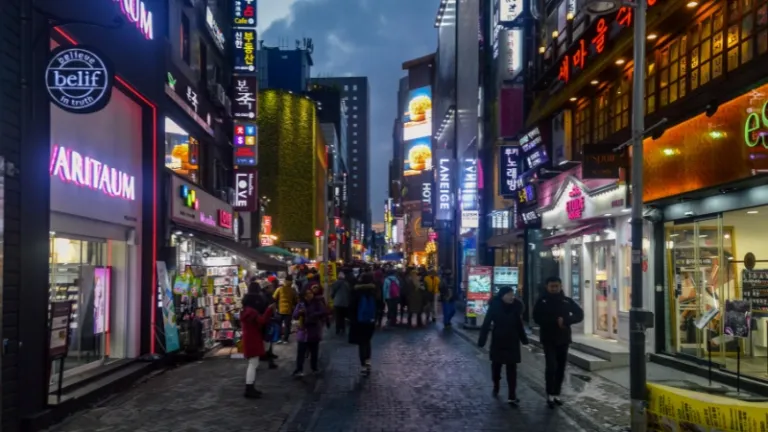 Bagi pencinta belanja, menginjakkan kaki di Myeongdong ibarat sebuah kewajiban. Jalanan di sini dipadati oleh deretan toko mode, butik K-beauty, dan tentu saja, street food Korea yang legendaris. Meskipun kawasan ini sangat turistik, Myeongdong tetap layak dikunjungi. Hampir semua brand Korea berkumpul di sini, jadi kamu bisa belanja skincare hingga sepatu sneakers sekaligus.