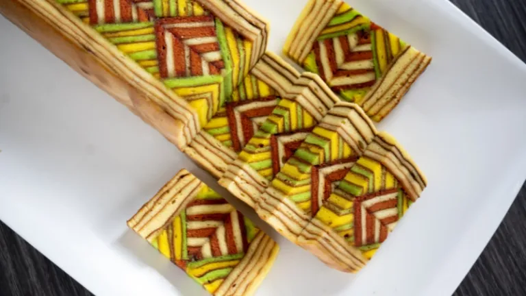 Kek Lapis Sarawak adalah kue lapis berwarna-warni yang terkenal di Sarawak, Malaysia. Terbuat dari lapisan adonan berbeda dengan rasa seperti vanila, cokelat, atau rempah-rempah, kue ini memiliki tampilan yang cantik dan rasa yang lezat.