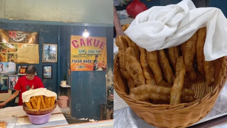 Berlokasi di antara Bakmi Gang Kelinci dan Bakmi Aboen, ada tempat jajan kecil bernama Cakue Ko Atek. Meskipun sederhana, cakue di sini sangat legendaris, sudah ada sejak tahun 1971. Kamu bahkan bisa bertemu langsung dengan Ko Atek yang cekatan meracik adonan. Menu yang dijual hanya dua macam: cakue dan roti bantal. Meskipun harganya mungkin sedikit lebih mahal dibanding cakue umum, kamu harus cobain teksturnya yang padat tapi kenyal, serta aromanya yang harum khas karena digoreng memakai minyak kelapa.