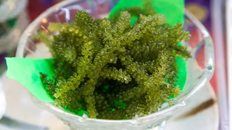 Sering dijuluki sebagai “kaviar hijau” umi budo adalah rumput laut dengan tekstur unik yang meletup-letup di mulut. Karena merupakan makanan mentah dari laut, sebaiknya kamu membelinya tepat sebelum pulang agar tetap segar.