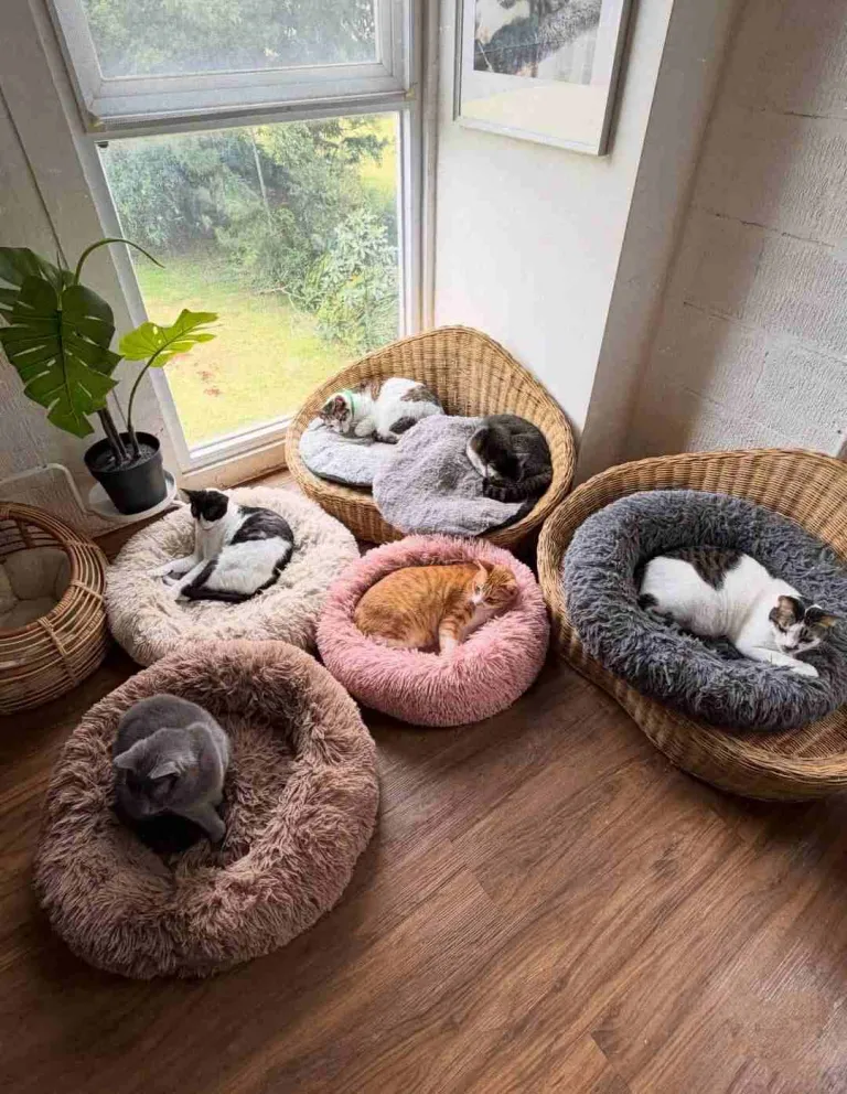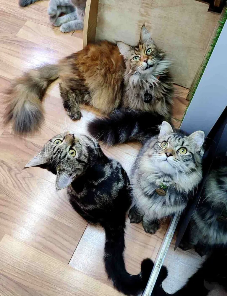Kucing-kucing yang ada merupakan kucing adopsi ataupun kucing liar yang dipelihara. Kamu dapat melihat foto-foto kucing penghuni cafe beserta namanya yang dipajang di sini. Nikmati juga pizza, nasi kucing katsu atau karage sambil melihat anabul bersantai di sekitarmu.