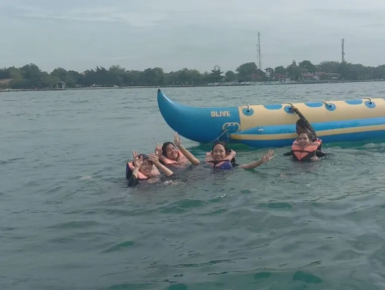 Bukan hanya keindahan alami lautnya yang menarik bagi wisatawan. Pengelola pulau telah menyediakan berbagai wahana air seperti banana boat dan donat air yang akan membuatmu bersemangat. Keamanannya terjamin karena setiap peserta akan diberikan pelampung dan ombak pun tidak tinggi. Kamu pun dapat meminta bantuan untuk membuat dokumentasi selama bermain, jadi pengalaman ini tidak akan terlewatkan begitu saja. Coba bersama teman-temanmu, dijamin terasa semakin seru!