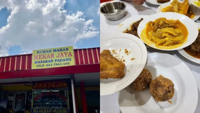 Di kawasan Mampang, Jakarta Selatan, ada RM Mekar Jaya yang jadi tujuan utama pencinta nasi Padang saat dini hari. Selama Ramadan, mereka beroperasi sampai waktu sahur. Kamu bisa memilih sistem ramesan atau lauk yang ditumpuk di meja. Rendang, gulai tunjang, dan dendengnya beneran juara! Harganya pun terjangkau, mulai dari Rp20.000-an tergantung lauk yang kamu pilih.
