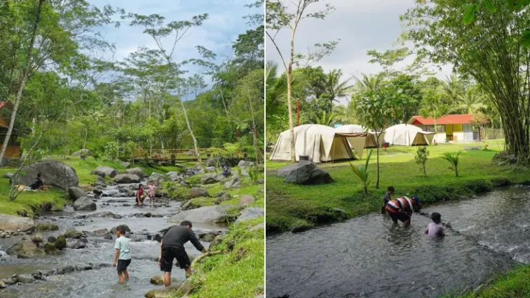 Potrobayan River Camp adalah destinasi yang sedang naik daun karena menawarkan suasana berkemah di bantaran sungai yang lebar dengan barisan pohon yang rindang. Suasana di sini sangat tenang dengan gemericik air sungai yang mengalir pelan, memberikan efek terapi alami bagi siapa pun yang berkunjung. Kamu bebas memilih spot di sepanjang sungai untuk mendirikan tenda.