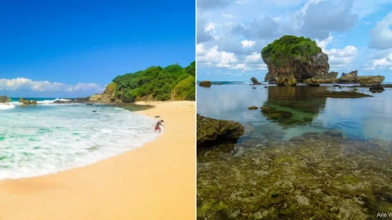 Pantai Jungwok adalah salah satu permata tersembunyi di Gunungkidul yang memiliki garis pantai berbentuk melingkar dengan pasir putih yang bersih. Berkemah di sini memberikan sensasi memiliki pantai pribadi karena lokasinya yang cukup tersembunyi. Kamu bisa membuat api unggun kecil di depan tenda sambil mendengarkan suara ombak dan melihat jutaan bintang di langit malam yang cerah. Pagi hari di Pantai Jungwok selalu diawali dengan pemandangan matahari terbit yang muncul perlahan dari balik karang besar di tengah laut.