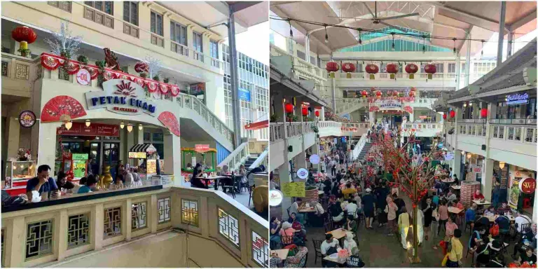 Petak Enam menghadirkan tempat untuk wisata kuliner dengan kemeriahan suasana Pecinan. Didominasi warna merah menyala, masuki gerbangnya untuk melihat alun-alun yang luas dengan beragam kedai dan lapak pedagang jajanan khas China. Mau duduk di dalam atau di luar ruang, tinggal pilih saja. Aneka kuliner yang nyaman di lidah seperti cempedak goreng, donat, kuotie, choipan, es goyang dan kue-kue tradisional China dapat dicicipi sekalian dibeli untuk oleh-oleh. Di waktu tertentu, nikmati juga acara manyao alias disko dengan iringan lagu China yang akan menghangatkan malam.