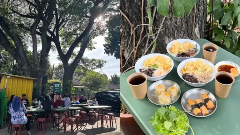 Toko Bubur di Bawah Pohon Rindang menyuguhkan pengalaman sarapan yang berbeda dari biasanya. Sesuai namanya, kamu bisa menikmati bubur ayam hangat di bawah rindangnya pepohonan. Tempat ini buka dari pagi hingga sekitar pukul 11 siang, cocok untuk kamu yang ingin menikmati udara segar Bandung sambil sarapan santai.
