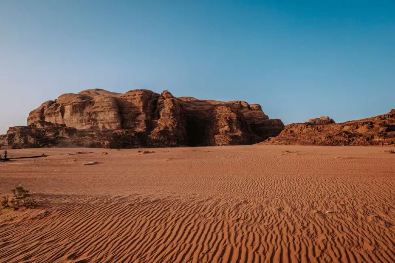 Merupakan padang gurun, Wadi Rum tidak hanya sekedar hamparan pasir yang luas. Aktivitas utama yang bisa dilakukan adalah mengendarai unta sambil menikmati lanskap alam dan teriknya matahari. Tapi tunggu hingga menjelang malam dan kamu akan mendapatkan keajaiban yang tidak terlupakan. Wadi Rum dianggap bak planet Mars karena pasirnya berwarna kemerahan. Ketika matahari terbenam, transisi warna merah hingga ke coklat terlihat sangat cantik. Sewa juga tenda untuk bermalam di sini dan melihat bintang di langitnya yang bersih.