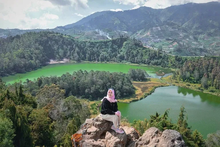 Airnya yang sangat jernih bikin kamu bisa bercermin langsung di permukaan telaga yang tenang ini. Letaknya tepat bersebelahan dengan Telaga Warna, namun suasananya terasa jauh lebih damai dan bisa menyejukkan hati.