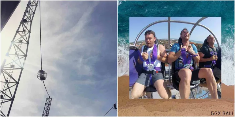 Wahana seperti 5GX Bali Reverse Bungy ini unik dan kalau kamu termasuk yang bernyali besar, coba saja menaikinya. Beli dulu tiketnya sebelum kamu merasakan pengalaman terlontar ke udara dengan kecepatan sekitar 200 kilometer per jam. Seru dan menegangkan bukan? Permainan berdurasi tiga menit ini juga akan membuatmu berayun-ayun bebas di udara, dengan pemandangan kota Legian di bawah kakimu. Buktikan sendiri keseruannya, dijamin akan menjadi kenang-kenangan yang berkesan!