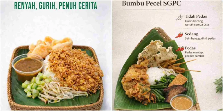 SGPC punya bintang utama dalam menunya, yaitu sego alias nasi pecel. Nasi yang sehat karena diberi sayuran, sate dan bakwan sebagai lauknya, semakin menggiurkan karena disiram saus kacang yang bisa dipilih tingkat kepedasannya. Selain nasi pecel, kedai ini juga menjual nasi rawon yang kuahnya gurih kluwak dan tahu telur yang bertekstur renyah. Lengkapi dengan es semangka atau lemon soda yang segar dan dingin.
