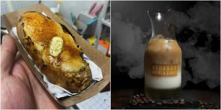 Mau minum kopi tapi sekalian ngemil, ada Sahabat Dunia Kopi yang menyediakan keduanya. Kudapan terkenalnya adalah ubi brulee yang tidak hanya empuk, tapi punya banyak pilihan rasa. Ada butter chocolate dengan mentega Wijsman, cream brulee, original jos gandos dan masih banyak lagi. Untuk menambah nafsu makan, ada sederet racikan kopi yang dibandrol dengan harga ekonomis. Coba es kopi Scudetto, Malikano hingga Palestino. Atau kopi Tubruk Tukino yang disajikan panas-panas. Bayangkan nikmatnya, pahit kopi berpadu dengan gurihnya ubi Cilembu!