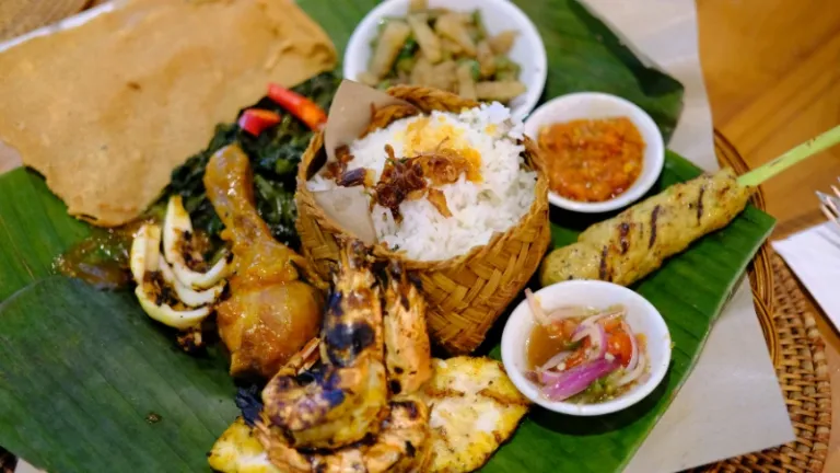 Nasi Campur adalah gambaran budaya Bali yang sesungguhnya. Dalam satu porsi, biasanya kamu bakal dapet nasi putih hangat dengan ayam betutu, sate lilit, sambal matah, kacang goreng, dan urapan.