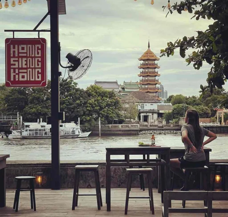 Makan bukan sekedar mengisi perut saat dilakukan di Talat Noi. Kafe dan restorannya punya desain menarik dan banyak yang punya sejarah seperti di Hong Sieng Kong. Berada di dalam bangunan berusia 200 tahun yang sudah direnovasi, kafe ini cantik luar dalam. Memilih duduk di sisi dalam berarti kamu bisa puas menikmati keindahan pajangan dan ornamen antik yang membuatmu serasa berada di dalam galeri seni. Bila duduk di area luar, maka keindahan Sungai Chao Phraya akan menjadi milikmu.