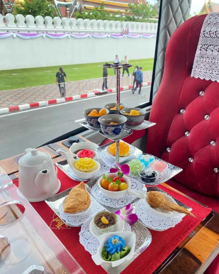 Thai Bus Food Tour adalah alternatif seru bagi kamu yang doyan makan. Menyajikan menu ala fine dining, bus ini beroperasi dalam empat periode untuk makan siang, afternoon tea, makan malam, dan kehidupan malam. Kamu dapat membeli tiket turnya di agen perjalanan, dan siapkan dirimu untuk mengecap sensasi yang disajikan. Makan di restoran mewah sudah biasa, tapi makan mewah di bus baru luar biasa!